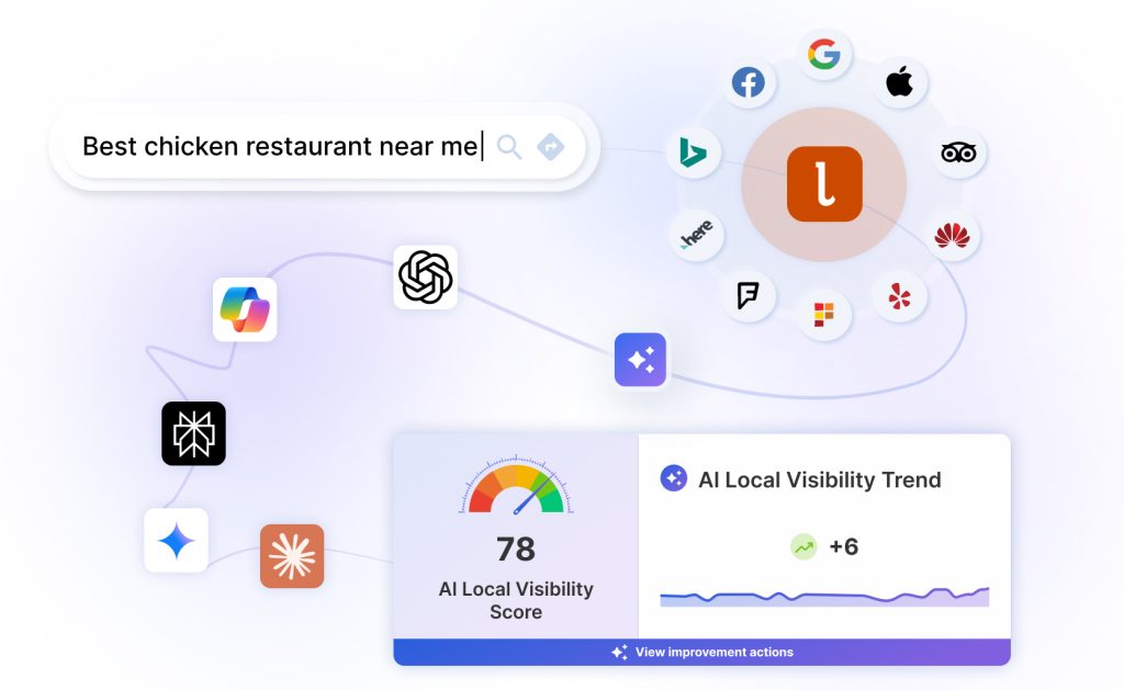 AI Visibility Index — A Localistico-developed metric that uses statistical precision to quantify your brand’s Share of Voice: how often and how prominently your locations appear when consumers ask high-intent local questions to the major AI assistants. Results are benchmarked directly against local competitors, revealing exactly where you’re winning and where there’s opportunity to improve.